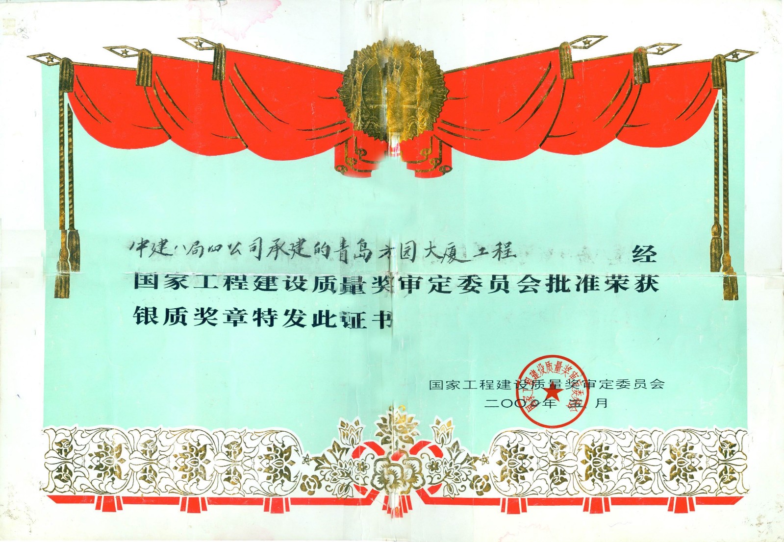 青岛方圆大厦荣获2000年度国家优质工程奖,工程位于青岛市市南区香港中路66号。由中国人保财险青岛分公司投资兴建,青岛万通建设监理有限责任公司监理,中建八局第四建设有限公司施工。为框架剪力墙结构,地下2层,地上29层,地面总高度122米,建筑面积35378平方米。工程于1994年4月28日开工,1996年4月27日竣工。