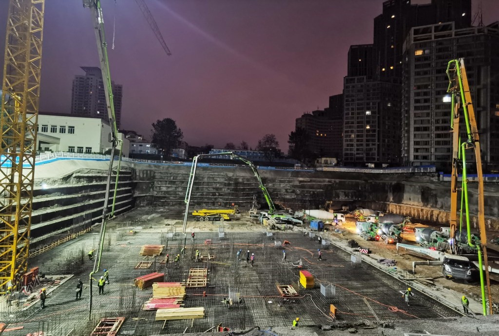 历时12个小时,随着最后一车混凝土成功灌入,四公司华东公司上海览海西南骨科医院项目顺利完成大底板浇筑,标志着项目深基坑施工取得了阶段性胜利,为后续主体结构全面施工拉开了序幕。