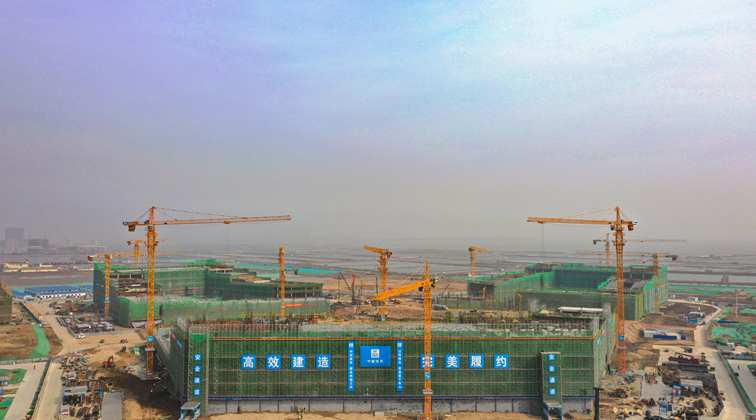 胶州湾畔,整体形似冰刀鞋的康复大学已显露雏形。16日上午,来到康复大学创新核部分建设现场,登上十几米高的观景台后看到,在偌大的施工场地上,三栋主体建筑已拔地而起,14台塔吊无死角高效率作业,近千名建筑工人正在忙碌着进行钢筋绑扎和模板支护作业,向项目如期交付发起冲刺。