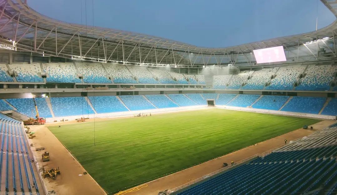 视觉盛宴!公司青岛青春足球场项目7560平方米天然草铺设正式完成