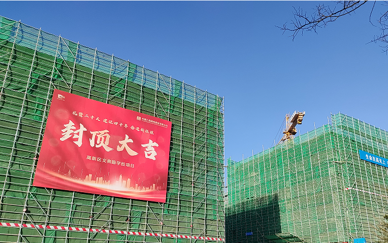 公司青岛高新区文典路学校项目主体封顶并喜获业主表扬信